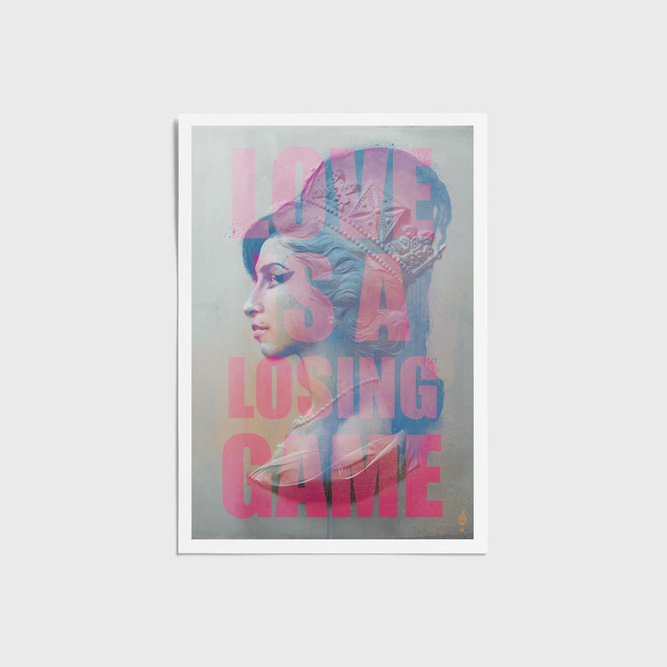 Printed on a truly special polar pearl paper giving a shimmer finish and making this an extra special statement print for any Amy Winehouse fan.
