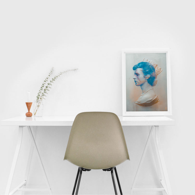 Each one is printed on a truly special polar pearl paper giving a shimmer finish and making this an extra special statement print for any David Bowie fan.