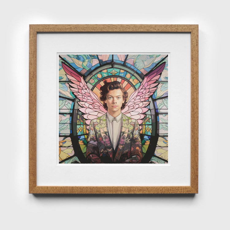 This 10x10" fine art print of the divine Harry Styles is the perfect way to add a touch of celestial style to your home. With angel wings and technicolor hues, our "Saint Styles" wall art is a truly unique gift and an absolute must have for any adoring Harry fan.
