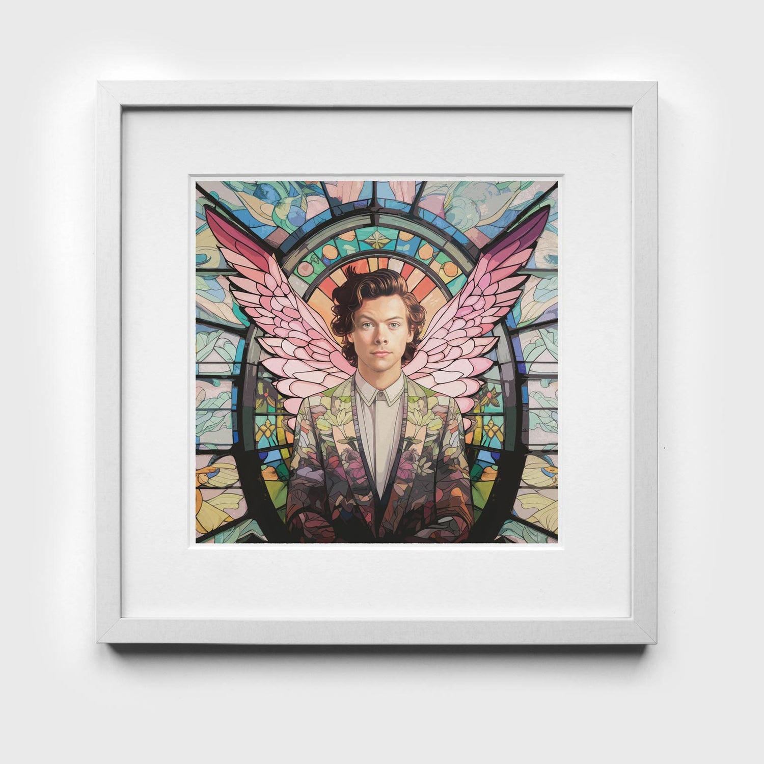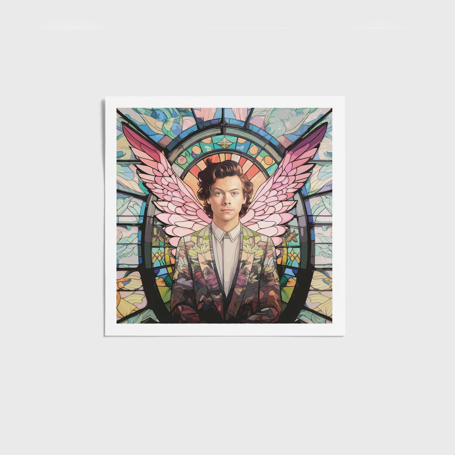 This 10x10" fine art print of the divine Harry Styles is the perfect way to add a touch of celestial style to your home. With angel wings and technicolor hues, our "Saint Styles" wall art is a truly unique gift and an absolute must have for any adoring Harry fan.